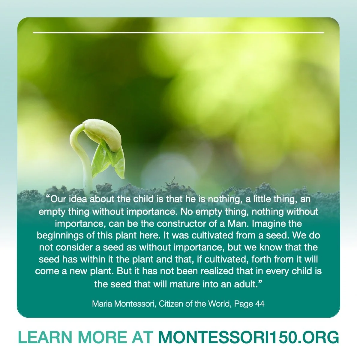 As parents and classroom guides we prepare the environment, which includes setting limits and respectfully establishing boundaries. We nurture the child by fueling their interests and trusting that they have the intrinsic knowledge they need to construct themselves. We provide everything necessary, including a steadfast, loving emotional environment in which they can thrive and come to trust themselves. We are establishing a beautiful, rich garden for this little seed to grow in that is sure to bloom into an amazing individual in years to come.